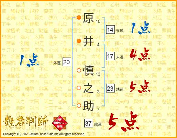 原(10画)井(4画) 慎(13画)之(3画)助(7画)