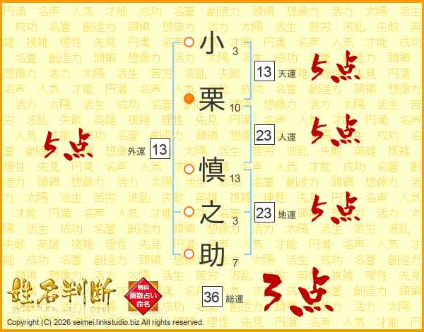 小(3画)栗(10画) 慎(13画)之(3画)助(7画)
