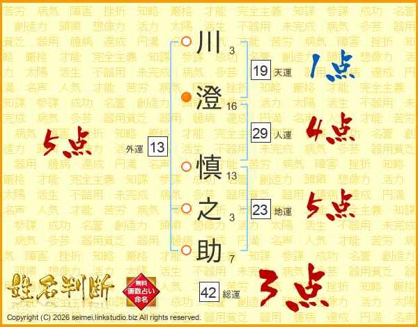 川(3画)澄(16画) 慎(13画)之(3画)助(7画)