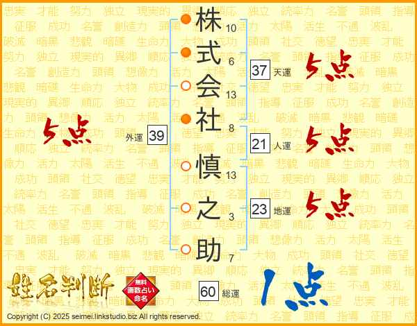 株(10画)式(6画)会(13画)社(8画) 慎(13画)之(3画)助(7画)