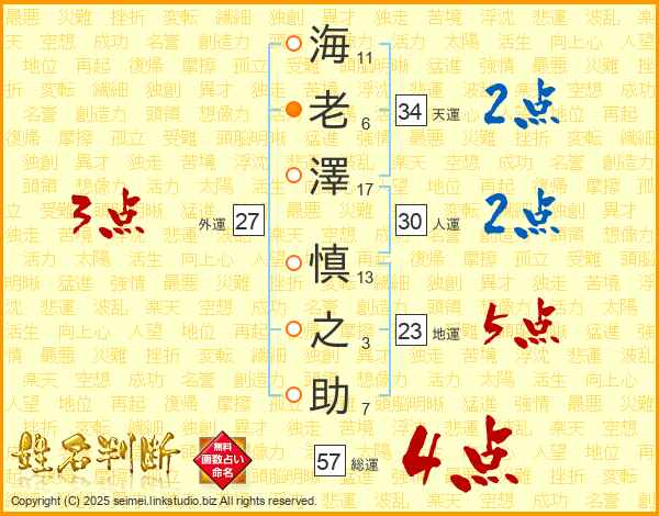 海(11画)老(6画)澤(17画) 慎(13画)之(3画)助(7画)