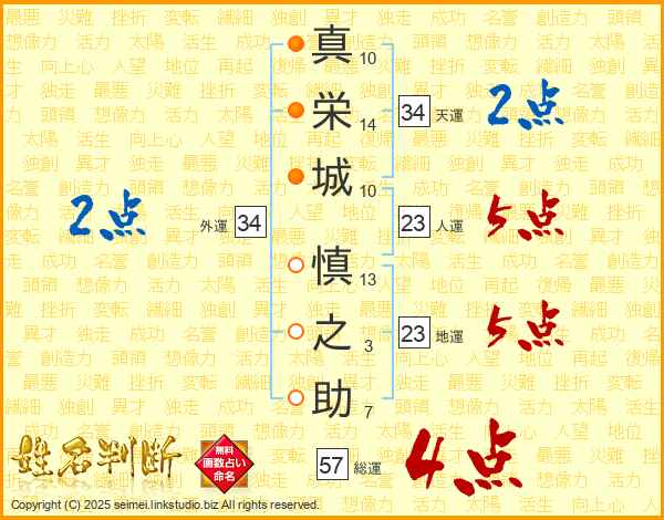 真(10画)栄(14画)城(10画) 慎(13画)之(3画)助(7画)