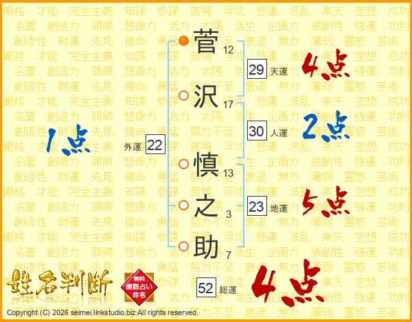 菅(12画)沢(17画) 慎(13画)之(3画)助(7画)