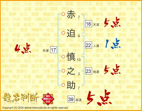 赤迫慎之助さんの総運は39画の5点!