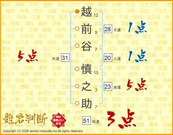 越前谷慎之助さんの人運は20画の1点!