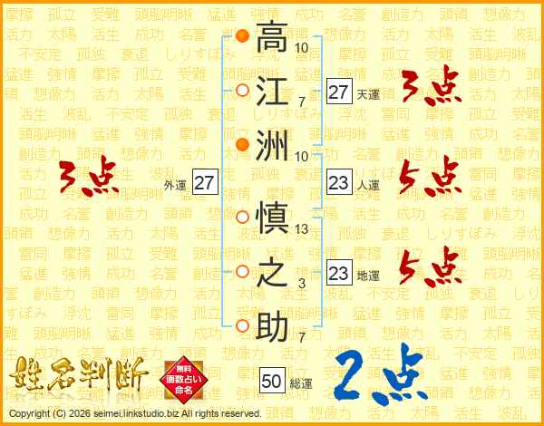 高(10画)江(7画)洲(10画) 慎(13画)之(3画)助(7画)