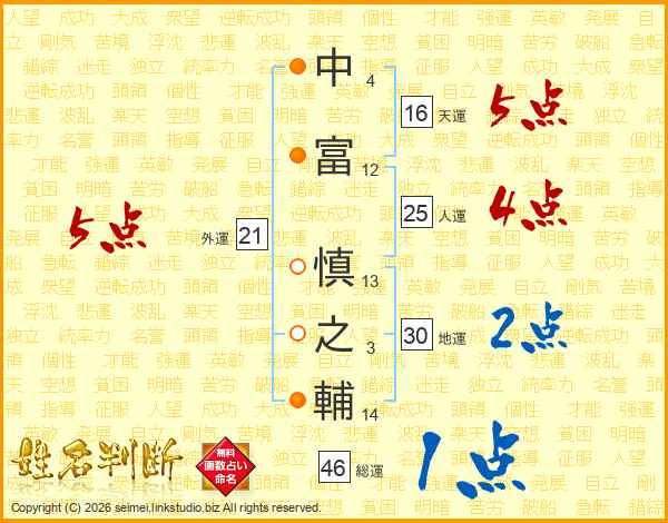 中富慎之輔さんの総運は46画の1点!