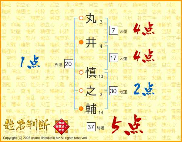 丸(3画)井(4画) 慎(13画)之(3画)輔(14画)