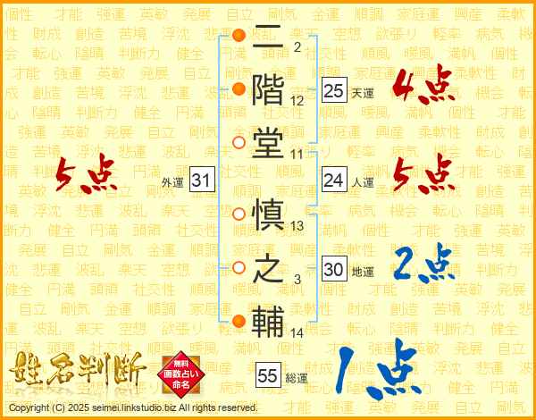 二階堂慎之輔さんの外運は31画の5点!