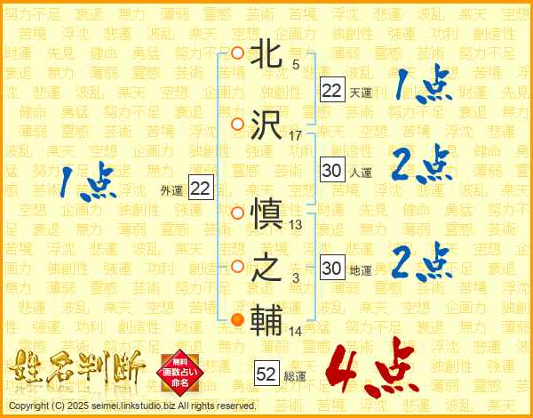 北(5画)沢(17画) 慎(13画)之(3画)輔(14画)