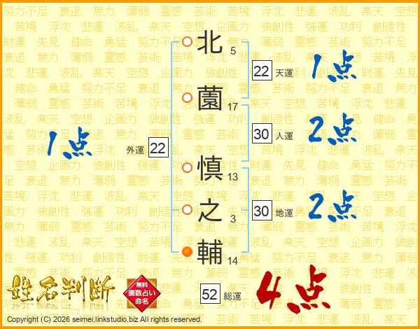 北薗慎之輔さんの総運は52画の4点!