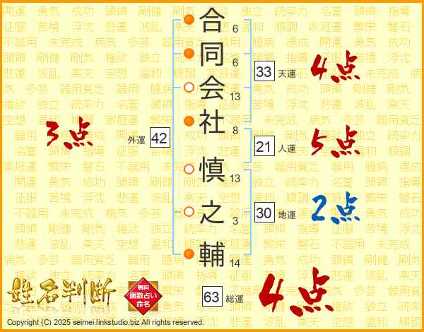 合同会社慎之輔さんの総運は63画の4点!