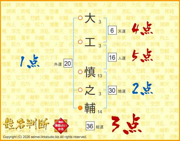 大工慎之輔さんの総運は36画の3点!