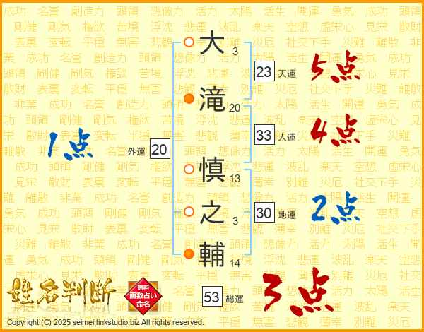 大(3画)滝(20画) 慎(13画)之(3画)輔(14画)