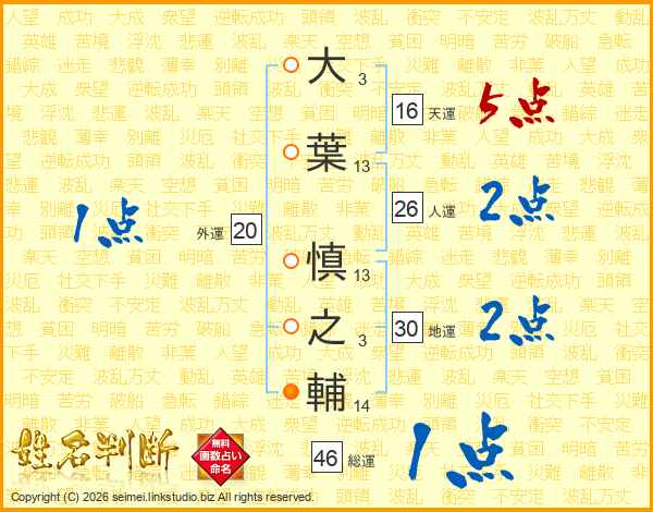 大葉慎之輔さんの総運は46画の1点!
