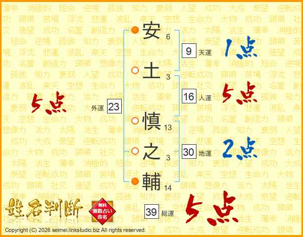 安(6画)土(3画) 慎(13画)之(3画)輔(14画)