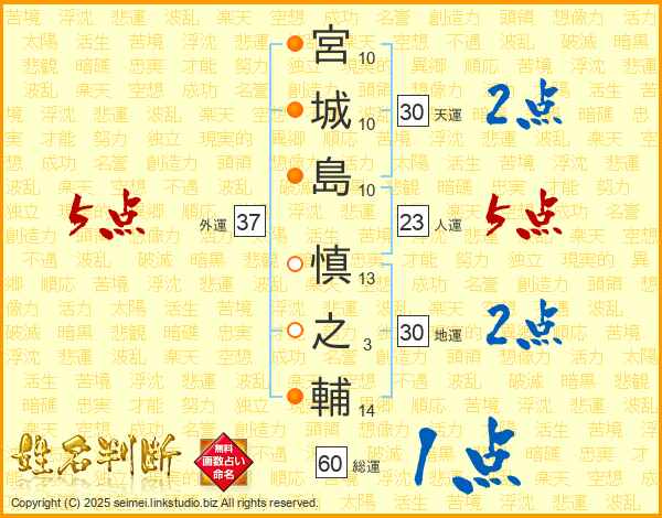 宮城島慎之輔さんの天運は30画の2点!