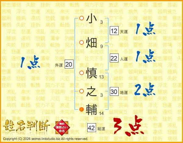 小(3画)畑(9画) 慎(13画)之(3画)輔(14画)