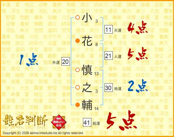 小花慎之輔さんの総運は41画の5点!