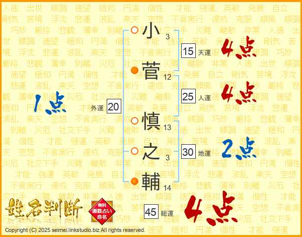 小(3画)菅(12画) 慎(13画)之(3画)輔(14画)