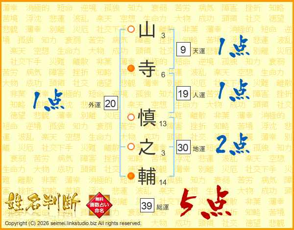 山寺慎之輔さんの総運は39画の5点!