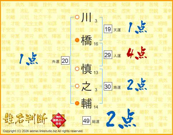 川(3画)橋(16画) 慎(13画)之(3画)輔(14画)