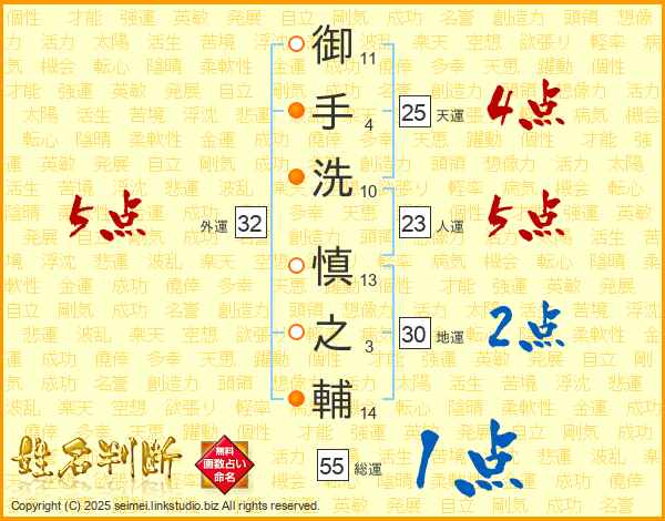 御手洗慎之輔さんの外運は32画の5点!