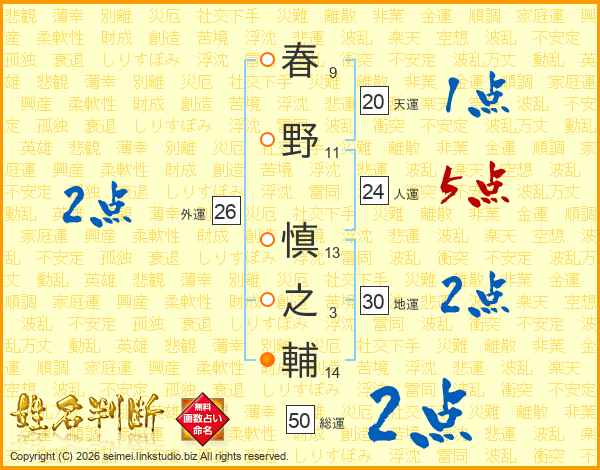 春野慎之輔さんの総運は50画の2点!