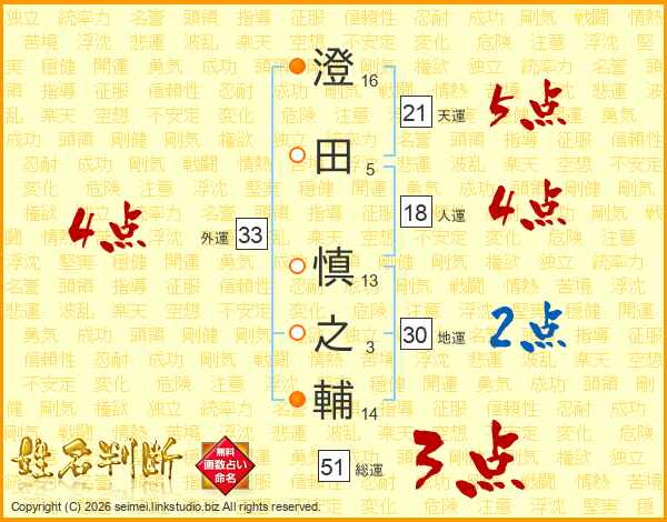 澄(16画)田(5画) 慎(13画)之(3画)輔(14画)