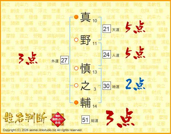 真野慎之輔さんの総運は51画の3点!