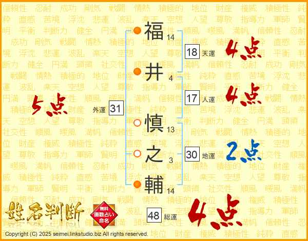 福井慎之輔さんの総運は48画の4点!