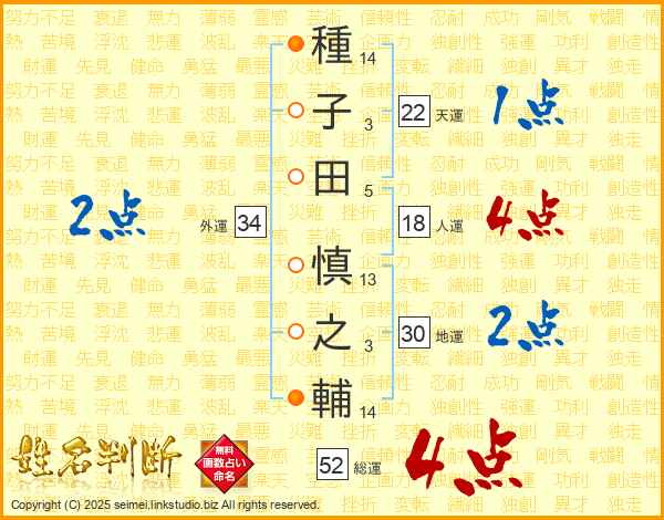 種子田慎之輔さんの総運は52画の4点!