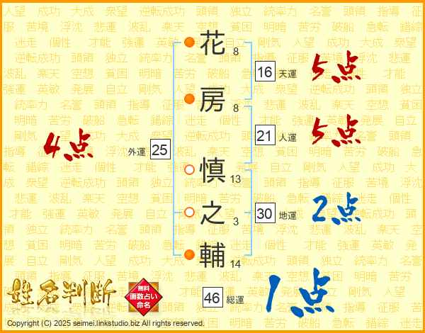 花(8画)房(8画) 慎(13画)之(3画)輔(14画)