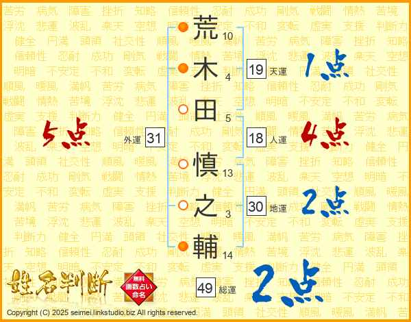 荒木田慎之輔さんの総運は49画の2点!