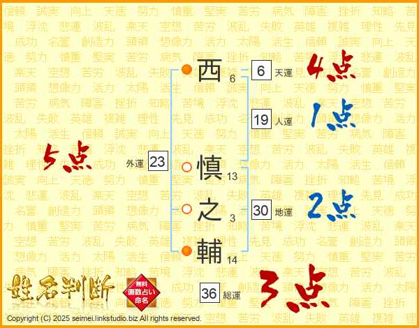 西慎之輔さんの総運は36画の3点!