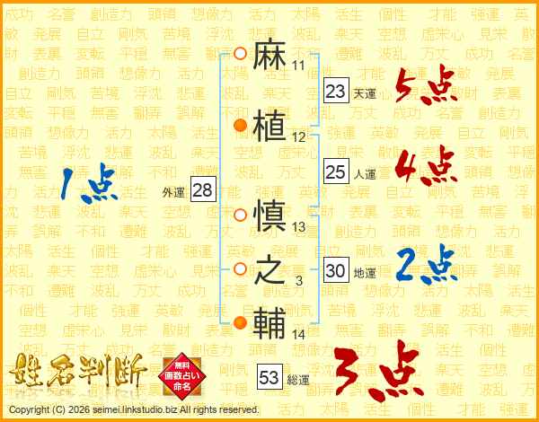 麻植慎之輔さんの天運は23画の5点!