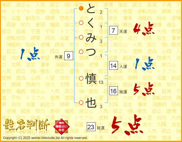 とくみつ慎也さんの総運は23画の5点!