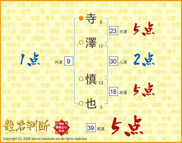寺(6画)澤(17画) 慎(13画)也(3画)