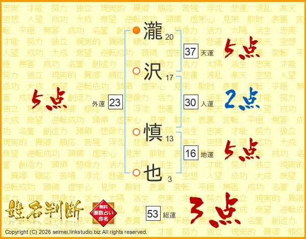 瀧沢慎也さんの天運は37画の5点!