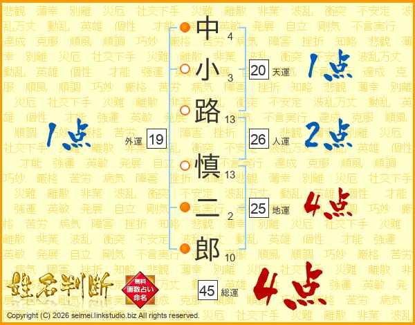 中小路慎二郎さんの総運は45画の4点!