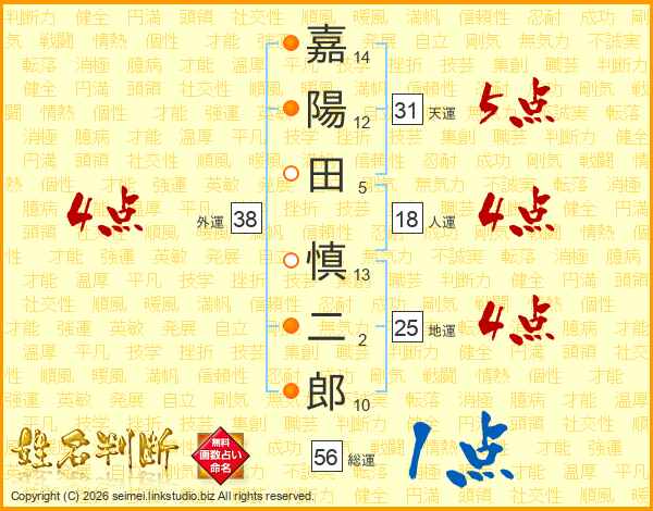 嘉陽田慎二郎さんの総運は56画の1点!