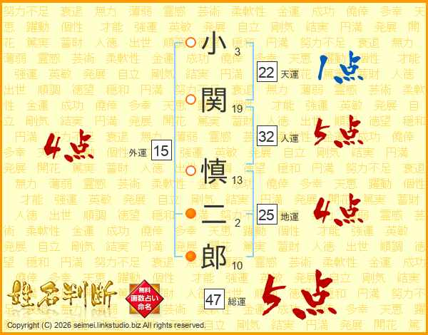 小関慎二郎さんの総運は47画の5点!