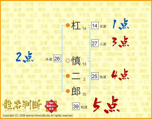 杠慎二郎さんの総運は39画の5点!