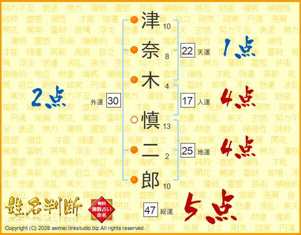 津奈木慎二郎さんの総運は47画の5点!