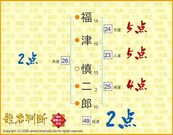 福津慎二郎さんの総運は49画の2点!