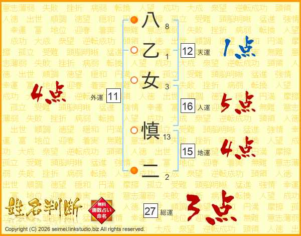 八乙女慎二さんの総運は27画の3点!