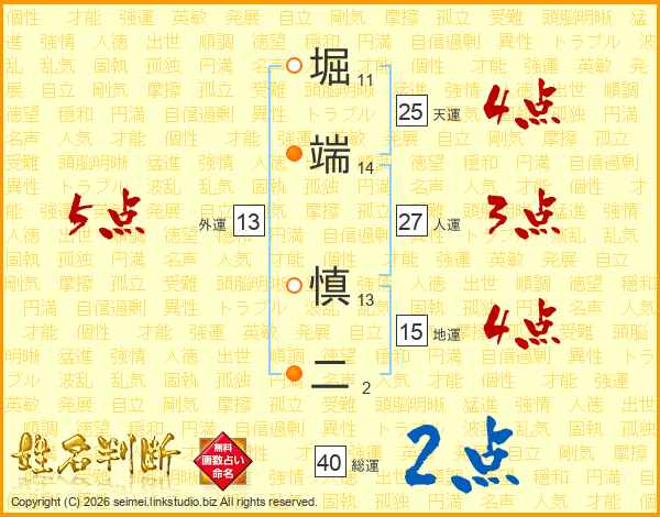 堀端慎二さんの総運は40画の2点!
