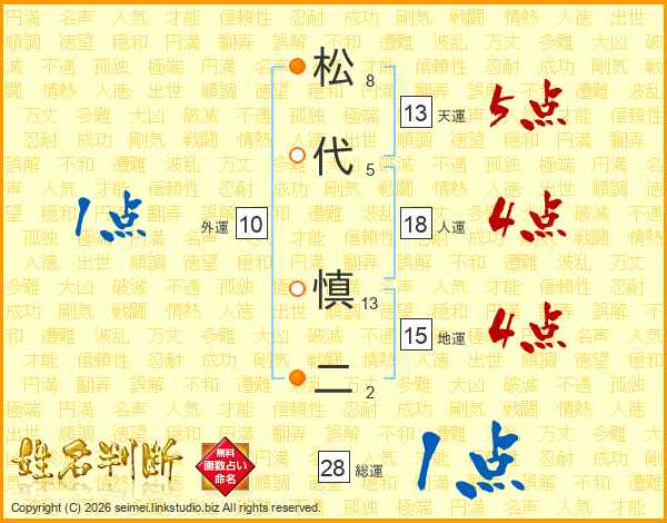 松代慎二さんの天運は13画の5点!