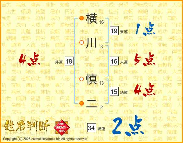 横川慎二さんの総運は34画の2点!