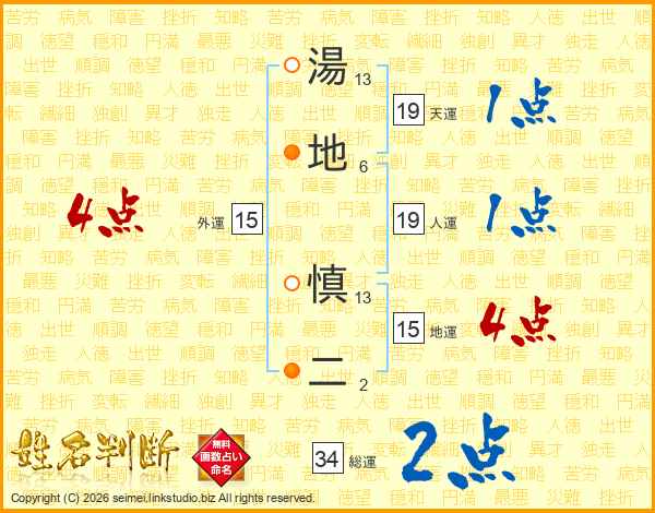 湯地慎二さんの総運は34画の2点!